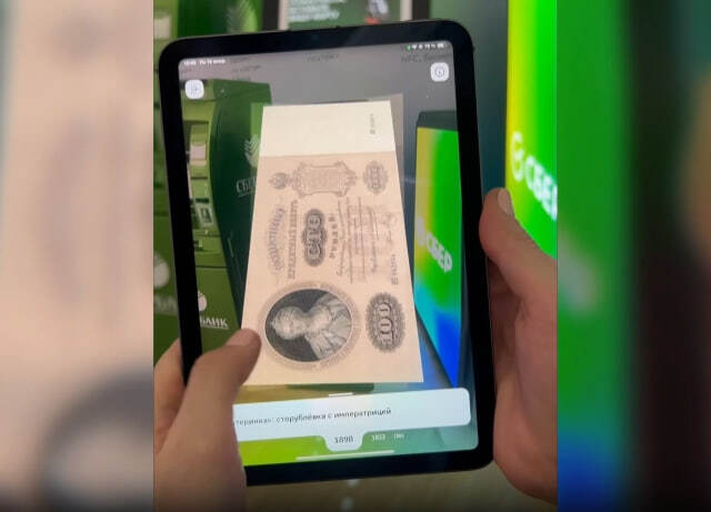 На выставке «Россия» в павильоне СБЕР была представлена познавательная AR-активность. Посетители узнали историю 100-рублевой купюры и интересные факты о ней, например, почему деньги называют "бабками" и как это связано с портретом Екатерины на купюре 1900 года. Было отцифровано около 10 купюр разных эпох. Использование дополненной реальности позволило увидеть, как менялась 100-рублевая купюра за последние 100 лет и какие факты её сопровождали.