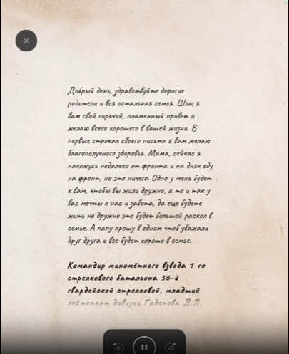 Этот пример демонстрирует функциональное применение дополненной реальности. Люди приходят в музей, чтобы прикоснуться к истории, и чтение фронтовых писем в игровом формате делает посещение более современным и увлекательным.