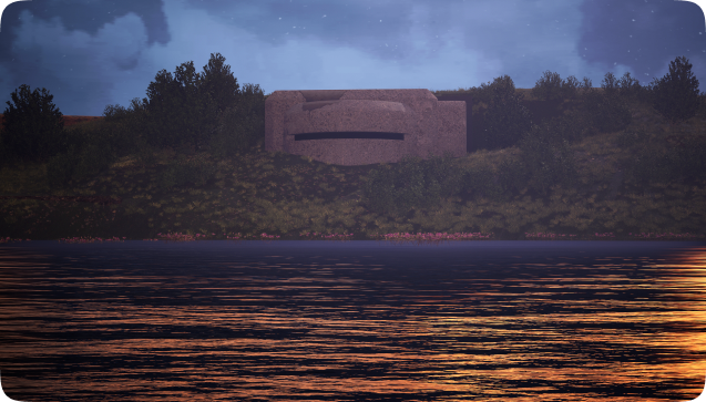 Мы выполнили графическую визуализацию фортификационного сооружения времен Второй мировой войны, используя архивные фотографии и описания для создания точной реконструкции. Воссоздание окрестностей и деталей укрепления помогает зрителям лучше понять стратегическое значение таких объектов в военной истории.
